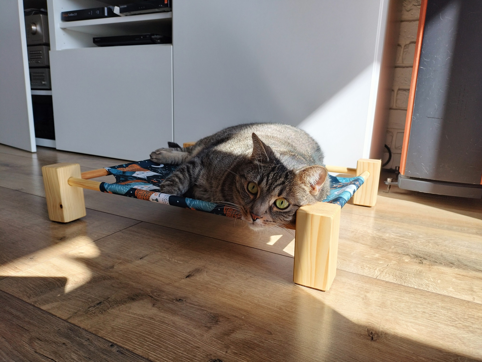 Zakupy u Pani Izy w sklepie kotaraj.pl to sama przyjemność. Przemiła i pomocna obsługa, szybka dostawa. Mebelki zrobione z wielką starannością, z dbałością o każdy szczegół. Wyglądają lepiej niż na zdjęciach. Drewno pięknie pachnie, a tkanina miła w dotyku i bardzo mięciutka. Lilka na razie upodobała sobie legowisko pupiLove, ale jak zamontuję schodki i leżaczek na ścianie to zapewne będzie miała dylemat gdzie się wylegiwać przez cały dzień... i noc:)