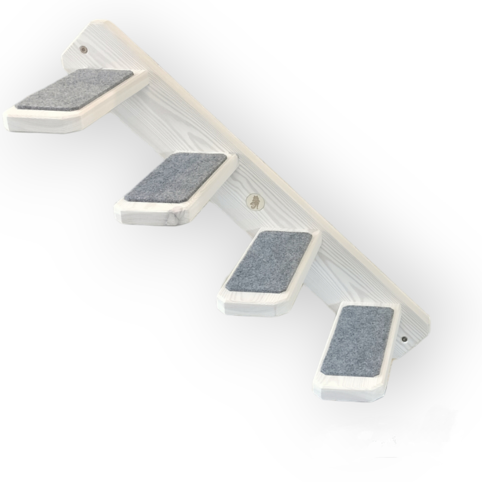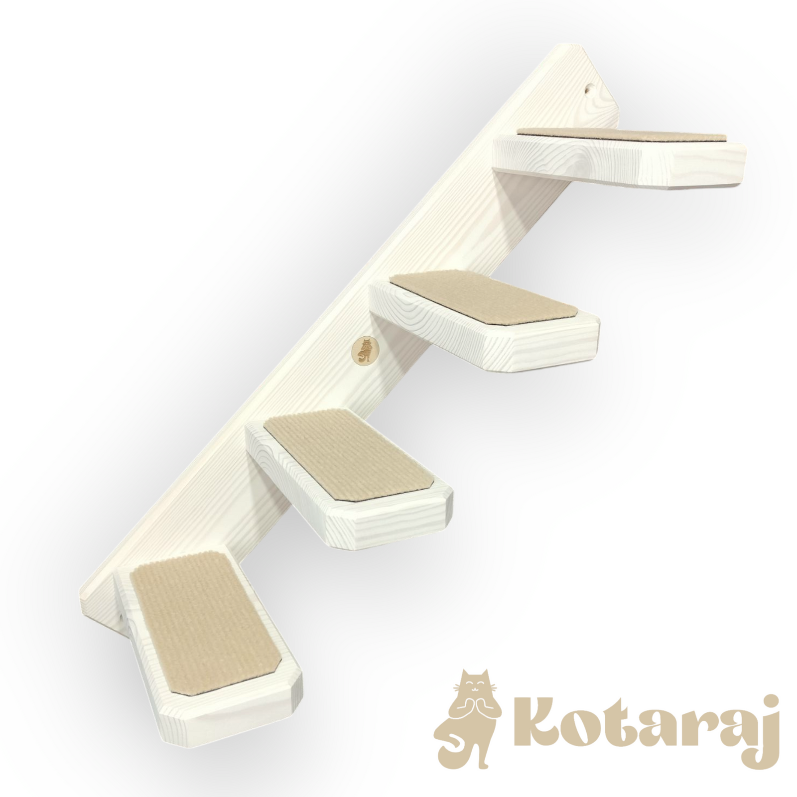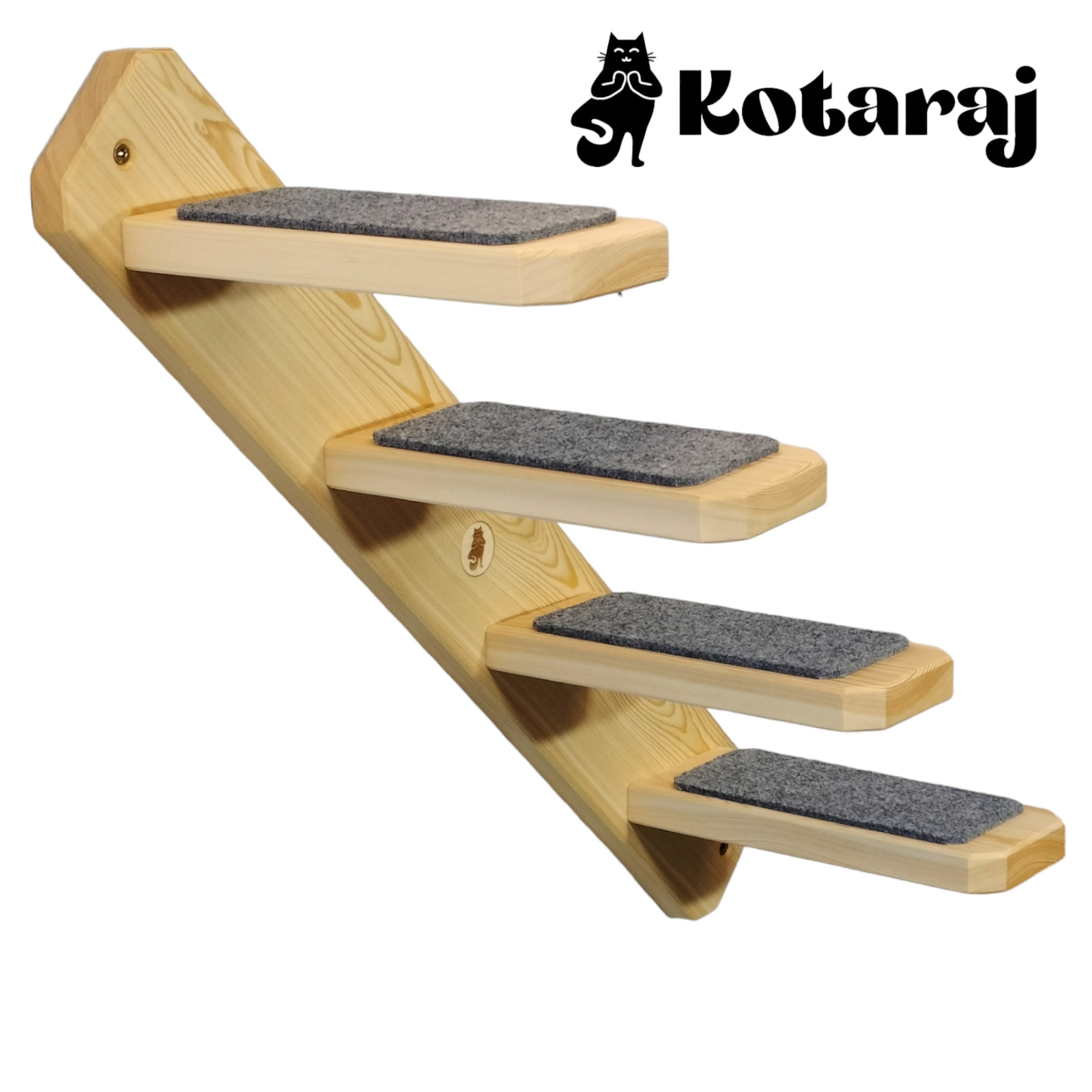 Schodki wykonane są z litego drewna. Pozwolą one kotu na rozwijanie jego pasji wspinaczkowych oraz obserwowanie terenu z góry.