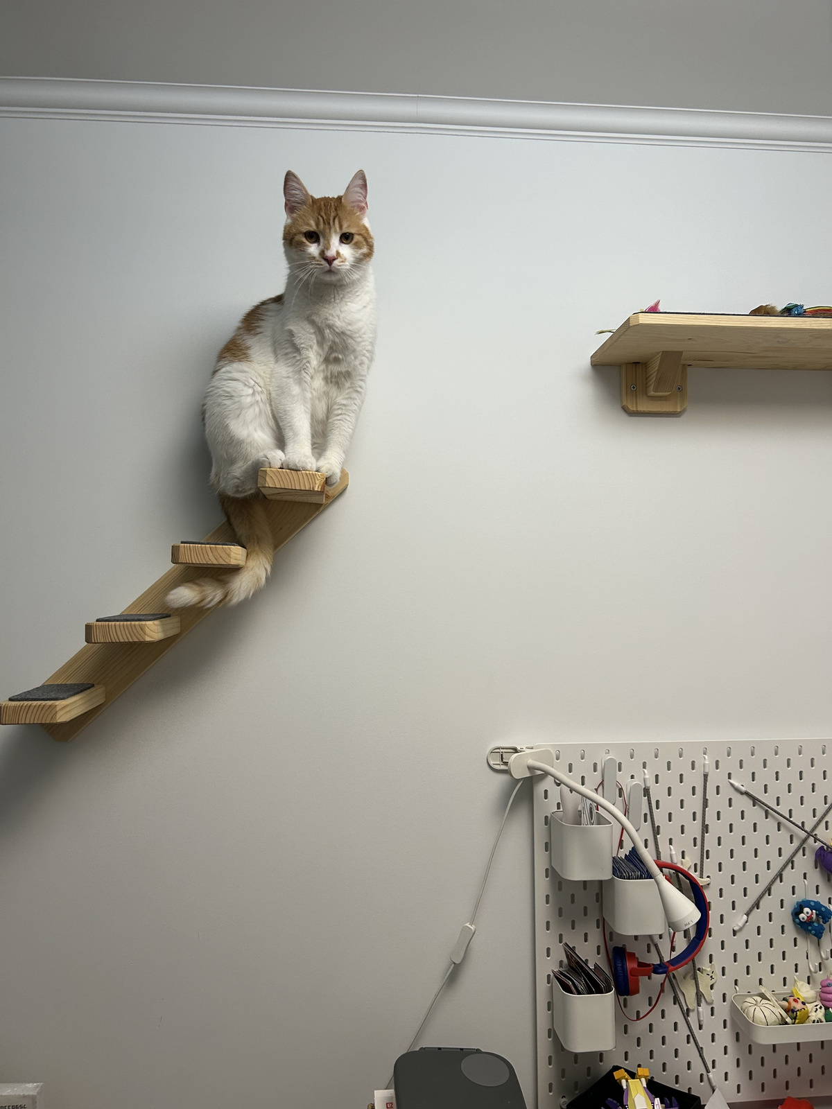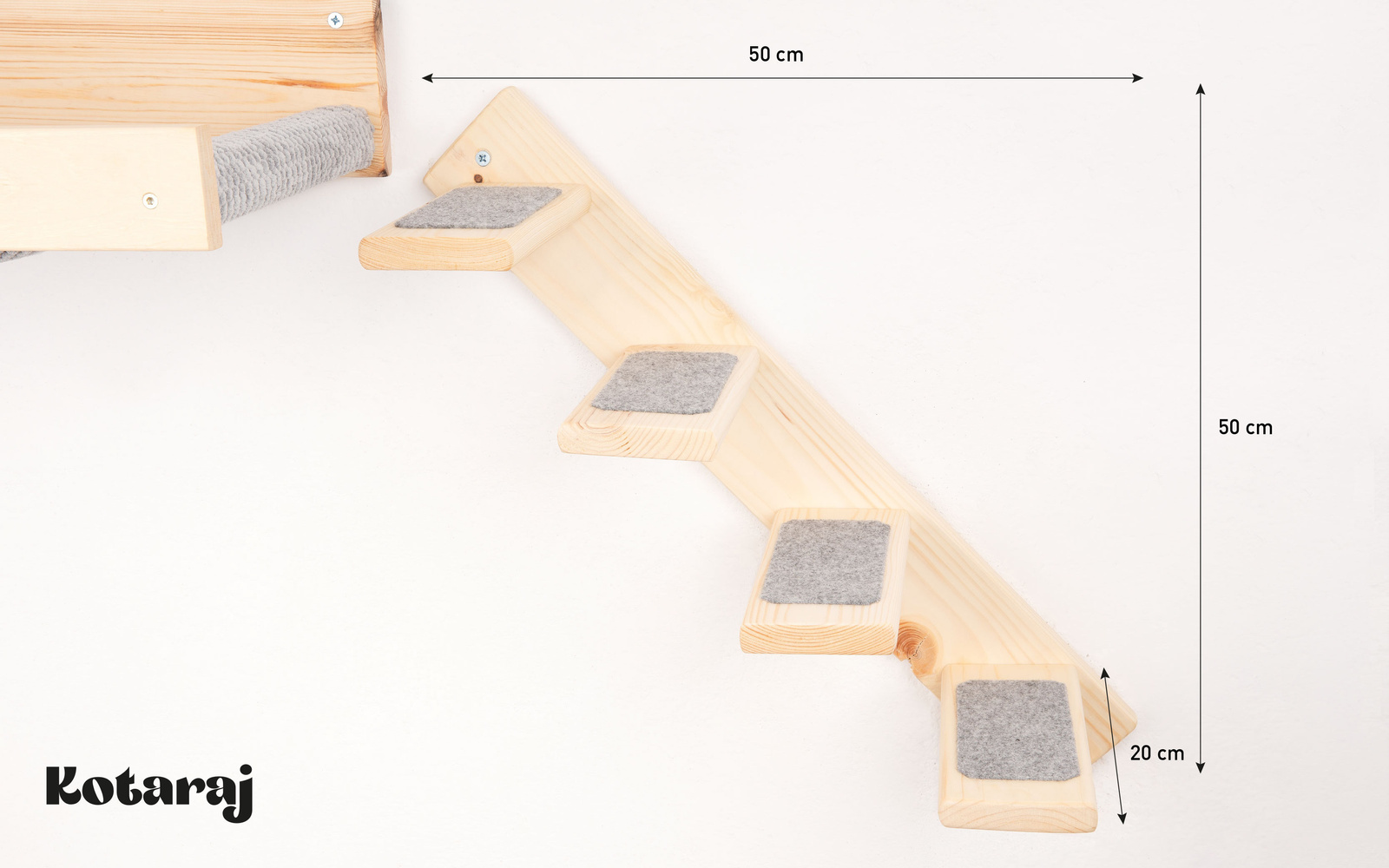 Schodki można zamontować na dowolnej wysokości, nachylone w prawą bądź lewą stronę, a w razie potrzeby połączyć z innymi elementami w celu stworzenia kociej autostrady.